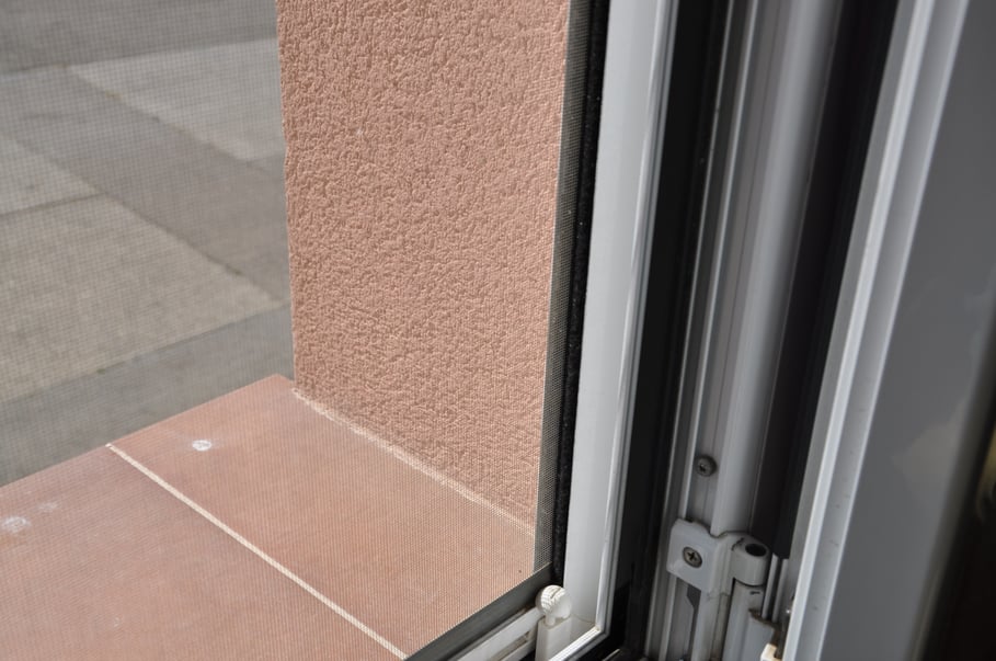 Les fenêtres à double vitrage avec rupture de pont thermique et le ressort ammortissant qui ferme automatiquement la porte