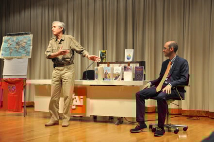 Traduction de la ciné-conférence de M. Brugiroux, connu pour être le plus grand voyageur au monde.
